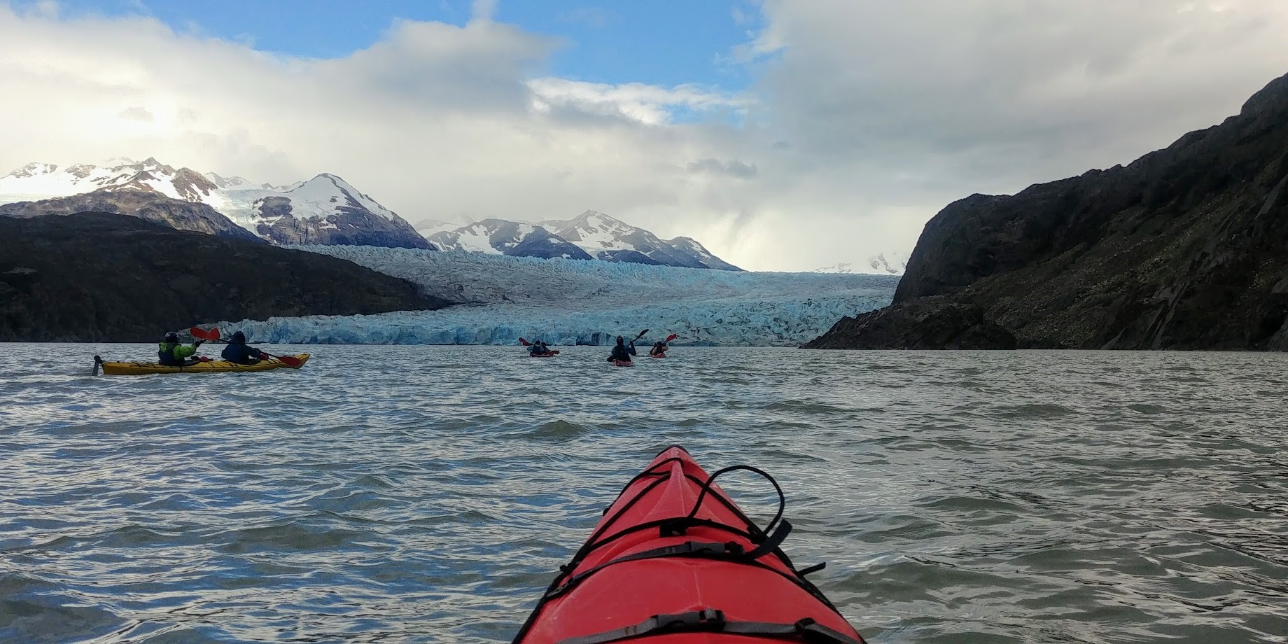 The W is a 50-mile trek, which requires packs filled with gear, and, in theory, places you away from urban amenities. As we were scouting and camping at times along the route, our packs were larger than they will need to be on future trips (phew). Torres de Paine is world renown for a reason. It’ll render you speechless. Since I last visited 6 years ago,the infrastructure has dramatically improved and has grown more sophisticated and luxurious. The small lodges still retain their individual charm, yet the meals were multi-course and fantastic, and hot showers, charging ports and paid WiFi (none of us partook) are now available along the route. Rodrigo and his Bigfoot crew, a local kayaking outfitter, led us in tandem kayaks as we wove around icebergs towards Glacier Grey.