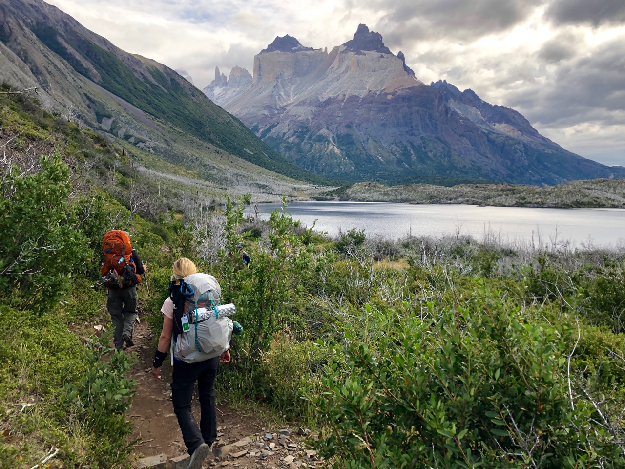 Our group split up after a week in Argentina,as four of us went west to scout the W trek in Parque Nacional Torres delPaine, Chile, in hopes of offering future trips that include both legs (hint:we have! Check out the website). The W requires a new mindset. As you cross into Chile to the western side of the Andes, the landscape grows lusher and clouds gather with more frequency. The wind and rain, which are well known in El Chalten too, caught up with us in Chile after our week of sun in Argentina.
